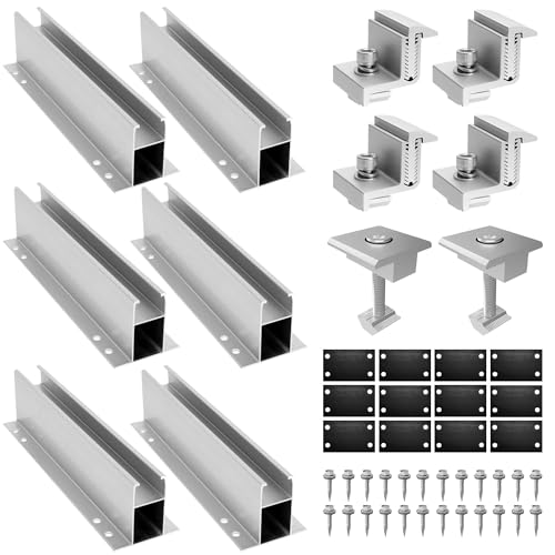 Facile installazione: Staffe fissaggio fotovoltaico montare i pannelli fotovoltaici sul tetto utilizzando binari profilati in alluminio e fissare i pannelli solari ai binari utilizzando i morsetti per moduli. Adatto per tetti in lamiera, piani e trapezoidali.
