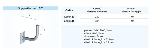 SUPPORTO A PARETE BRACCIO CORTO, 24 CM, ZINGATO FUOCO