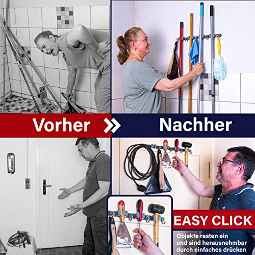 Utilizzabile in modo incomparabile: sia in cucina, dispensa, cantina come supporto per attrezzi in officina o in garage. Con il supporto per attrezzi da giardino puoi organizzare la tua pala, scopa, mocio, spatola, rastrello, strumenti