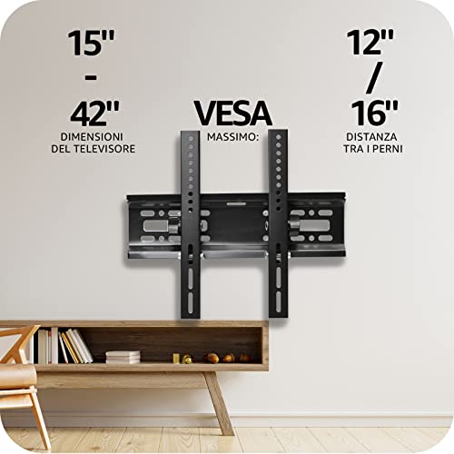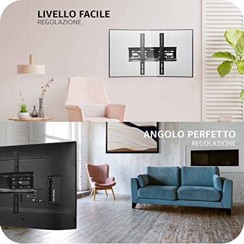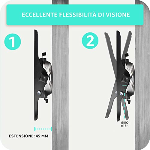 INCLINABILI - Il nostro supporto TV per montaggio a parete consente l' inclinazione di +15°/-5°, per ottenere la massima flessibilità di visualizzazione. Scegliete l'angolo perfetto per guardare lo schermo da qualsiasi punto della stanza.