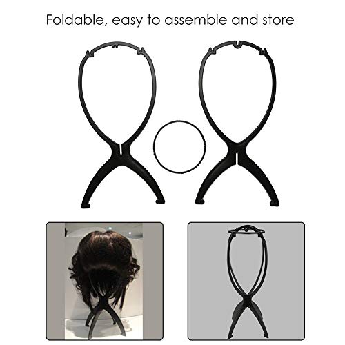 Supporto per parrucca in plastica, supporto per esposizione per parrucche, portatile staccabile, pieghevole, strumento di presentazione per parrucche per le donne di viaggio finitura dei capelli, nero