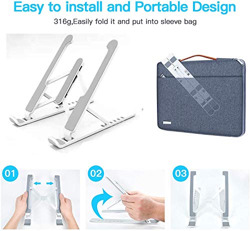 Portatile e pieghevole: questo supporto portatile per laptop può essere piegato rapidamente. Small size: 25.5 x 4.0 x 2.3 cm Facile da riporre e riporre molto piccolo spazio nella borsa. Il supporto pieghevole pesa solo 265 g, leggero e compatto, si può portare ovunque. Perfetto per casa, ufficio, scuola, hotel, caffè, ecc.