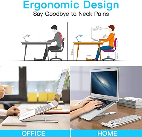 Regolabile ed ergonomico: la sesta altezza dello schermo del computer portatile può essere regolata liberamente da 15° a 75° per un perfetto livello dell'occhio, in modo da poter correggere la posizione e ridurre la fatica del collo, la schiena e l'affaticamento degli occhi. Molto comodo per lavorare a casa, in ufficio e all'aperto.