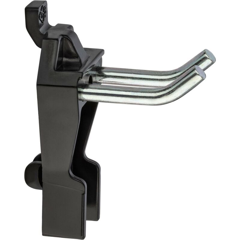 Gancio doppio, lunghezza 60 mm, ad es. per utensili con impugnatura a T Montaggio su pannelli forati con retino di foratura quadrato Peso netto (kg): 0.02 kg Dimensioni dell'imballaggio 1