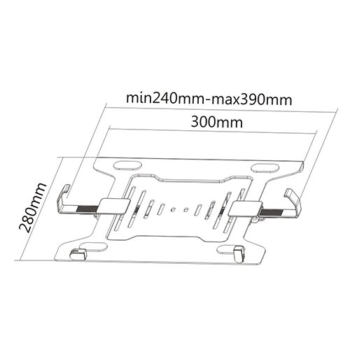 I piedini in silicone e le clip di sicurezza laterali regolabili mantengono il notebook al sicuro