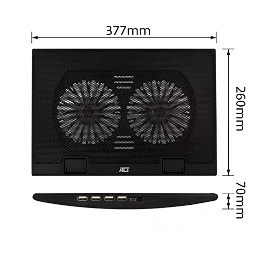 ACT Supporto di raffreddamento per laptop da 17", regolabile in altezza (2 posizioni ergonomiche), 2 ventole silenziose per l'ufficio, hub USB a 4 porte - AC8105