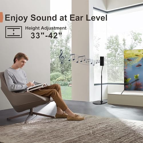 Gestione dei fili: crea un look pulito e organizzato: foro per cavo integrato per nascondere i cavi degli altoparlanti fuori dalla vista per un aspetto pulito ed evitare il disordine. Le fascette sono incluse nella confezione per aiutare a far scorrere il cavo attorno al tubo del supporto.