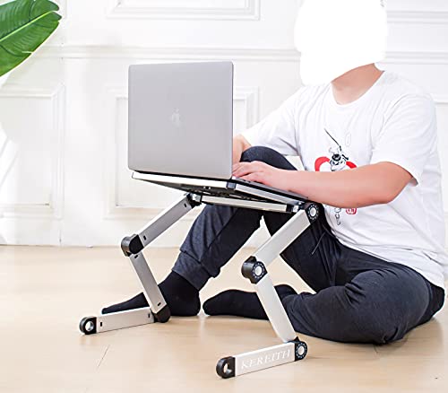 Supporto regolabile da tavolo per PC portatile, in alluminio, presa d'aria con ventola con ventole CPU, ultra leggero ed ergonomico, vassoio stand up per il letto e la sedia Silver
