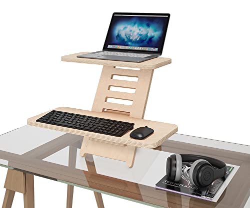 Supporto per scrivania in piedi, in legno, supporto per computer portatile, tavolo da pranzo, supporto da scrivania, altezza regolabile, prodotto in UE (naturale)