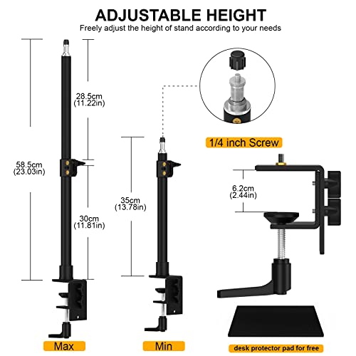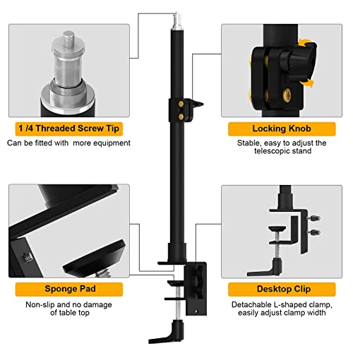 Supporto da Scrivania con 1/4" punta a vite, 18.3-48.8 pollici da Tavolo C Clamp Mount, Supporto Regolabile in Alluminio per Fotocamera/luce ad Anello/luce Video/Webcam/luce da Pannello