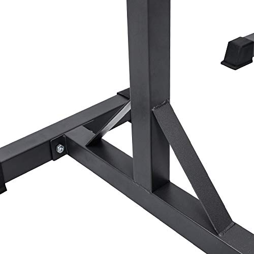 ♞ [Fitness multifunzionale]: porta squat regolabile liberamente e barra orizzontale per la ginnastica. Squat Stand consente di eseguire in sicurezza vari esercizi, tra cui panca, pressa per spalle, squat, flessioni, sollevamento pesi, barra orizzontale per ginnastica, ecc. Può essere liberamente modificato in rack per squat, stazioni di immersione e barre orizzontali.