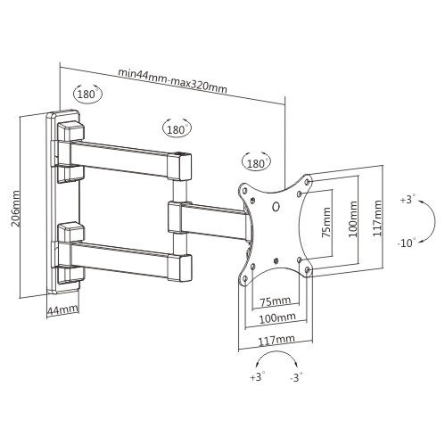 Supporto staffa 2 bracci per TV LCD LED 24 26 28 32 pollici