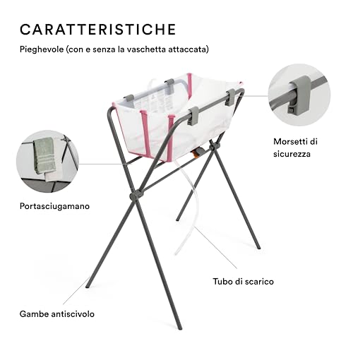 PRIMA DI TUTTO LA SICUREZZA - Con gambe antiscivolo, fermi a doppia azione e indicatori di sicurezza, il supporto Flexi Bath può essere usato per fare il bagno ai neonati fino a quando possono mantenersi in piedi senza aiuto. Per bambini fino a 10 kg.