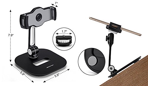 Morsetto compatibile: supporto universale per iPad con morsetti su entrambi i lati, si adatta a qualsiasi display tablet con dimensioni 4"-11" (iPad Air/Mini/iPad Pro 9.7", Galaxy Tab, Nexus, ecc) o smartphone (iPhone 4/5/6/7/Plus, Samsung Galaxy, ecc), con una tenuta decisa e sicura e tutto intorno una protezione in gomma.