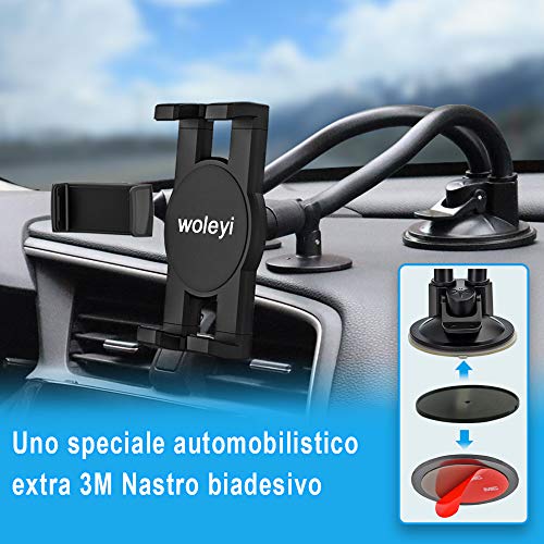 Supporto Tablet/Cellulare Auto Doppio, woleyi Porta iPad Macchina Parabrezza Cruscotto con Ventosa Collo di Cigno, Staffa Telefono Auto Flessibile per iPad Pro Air Mini, Lenovo, iPhone e 4-12.9