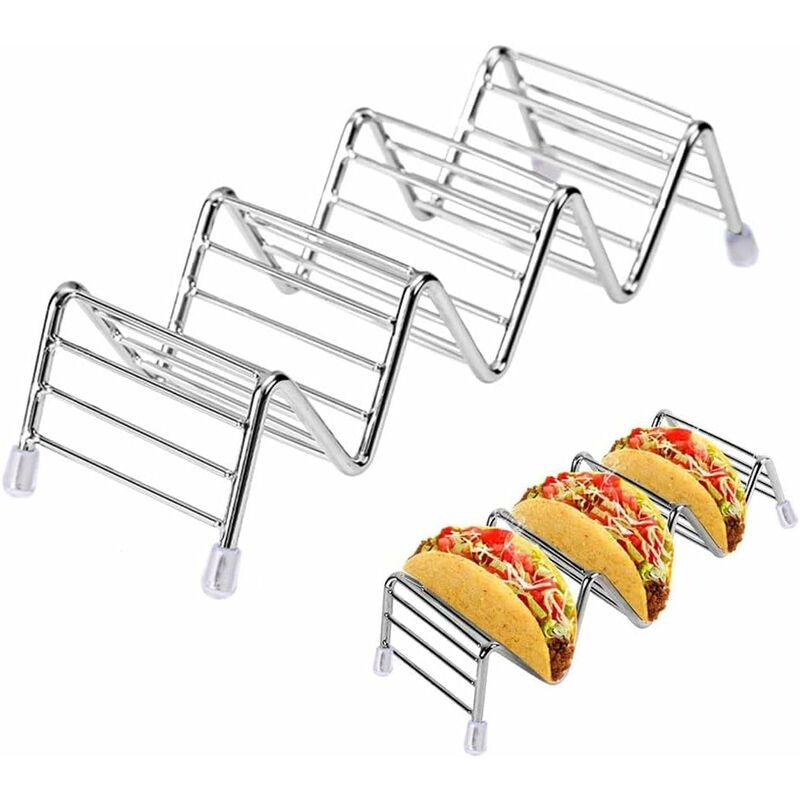 Supporto per taco: tieni pitta e tacos ripieni di pollo e insalata per evitare che il contenuto trabocchi. Ciò mantiene il taco in buona forma, ha un bell'aspetto e fa appello. Ti semplifica la preparazione dei classici pasti messicani, un ottimo regalo per gli amanti del taco. Materiale premium: il supporto per taco è realizzato in acciaio inossidabile di alta qualità, finemente lavorato, non arrugginisce, non si usura, durevole, resistente alla corrosione, durevole, riutilizzabile, può essere utilizzato a lungo. 【Facile da pulire】 Il porta taco è molto facile da pulire. Semplici ma efficaci, si possono lavare a mano e sono lavabili in lavastoviglie, facili da impilare nell'armadio. ). È possibile impilare più portataco senza occupare troppo spazio. I tuoi tacos non cadranno o si romperanno durante il riempimento. 【Ampio utilizzo】 I nostri supporti per tacos sono adatti per riscaldare e contenere guscio duro, tacos softshell, piccole tortillas, panini, pane caldo e altri cibi. Sono