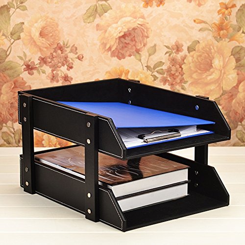 Supporto da tavolino per ufficio in pelle Fornitore di documenti / libretto Scatola portadocumenti / scatola di archiviazione di documenti / scatola di blocco Set di creatività ( Colore: Nero, dimensioni: 36.5*16*27.5cm )