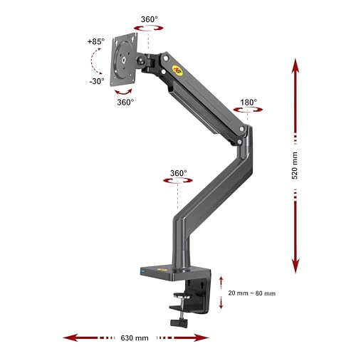 CON MOBILITÀ COMPLETA: Il tuoi monitor sono supportati da molla a gas per una distribuzione ideale del peso e possono essere spostati a proprio piacimento. Gli schermi possono essere ruotati di 360 ° e inclinati senza sforzo +85/-30° .