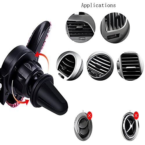 MINI DESIGN: il supporto per telefono con strass è piccolo e compatto e non blocca la linea di vista durante la guida. La dimensione è 3,35 pollici / 3,35 pollici (altezza * larghezza), regolabile per varie dimensioni di telefono, misura universale per la maggior parte degli smartphone e dei dispositivi GPS.