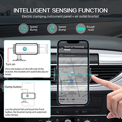 【Supporto per cellulare a induzione elettrica ruotabile a 360°】 Piccolo ma potente, non blocca l'uscita dell'aria. Come supporto per telefono per l'accessorio cruscotto dell'auto, si integra con la tua auto. Il supporto può essere ruotato di 360°, supporta schermi orizzontali e verticali e può essere azionato con una sola mano. Metti il tuo telefono nell'angolazione perfetta e goditi un'esperienza di guida più facile e sicura.