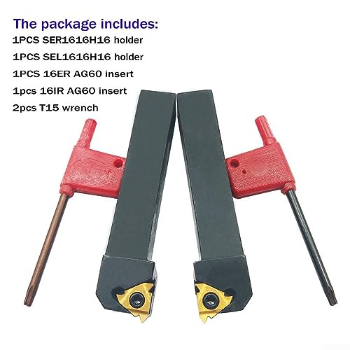 Supporto tornio SER1616H16/SEL1616H16 da 5/8'' + 16ER AG60/16IR AG60 inserti in carburo + 2 chiavi T15