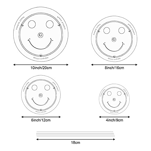 I diametri delle tavole per torta sono in 3,54/4,72/6,3/7,87 pollici (9/12/16/20cm). L'asta del tassello per torte può essere utilizzata direttamente o può essere tagliata alla lunghezza appropriata secondo le necessità prima dell'uso. Perfetto per realizzare torte da 4/6/8/10 pollici.