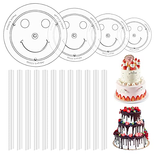 Supporto per torte, supporti riutilizzabili per torte, piatto per torte a 4 livelli con 12 bacchette in plastica per torte a più livelli, decorazione per torte nuziali, matrimoni, feste di compleanno