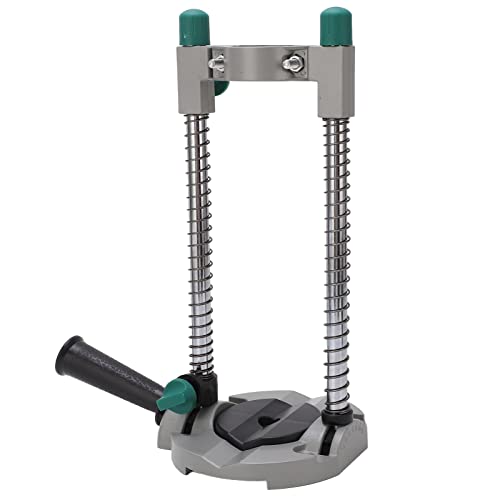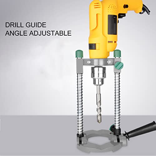★ Eccellente lega di acciaio e design ergonomico - Trapano a colonna portatile per trapano a mano Adotta un eccellente materiale in lega di acciaio, questa guida per trapano multi-angolo ha un'elevata resistenza e tenacità, forte e robusta. Questa guida per trapano ad angolo è progettata con una maniglia ausiliaria, la perforazione sarà più economica e sicura.