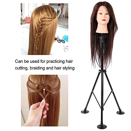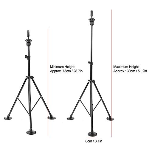 ▶ explore Altezza regolabile: l'altezza massima è di 130 cm e l'altezza può essere regolata a piacimento per soddisfare le tue esigenze. L'esclusivo design superiore del treppiede consente alla testa della parrucca di ruotare, aprire il treppiede e quindi ruotare la vite per regolare l'altezza, che è molto adatta per La testa da allenamento è praticata con altri strumenti da parrucchiere.