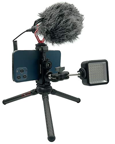 Supporto per treppiede in metallo con attacco a freddo da 1/4", rotazione a 360°, compatibile con iPhone 11 12 Pro Max, adattatore per supporto per smartphone, morsetto per cellulare