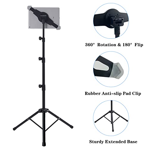 Supporto per treppiede per Tablet iPad, Supporto per treppiede regolabile in altezza per iPad Air 2/3/4 / iPad 9.7 / iPad Pro 10.5 / iPad Pro 12.9 e altri tablet da 9,7 a 14,5 pollici.