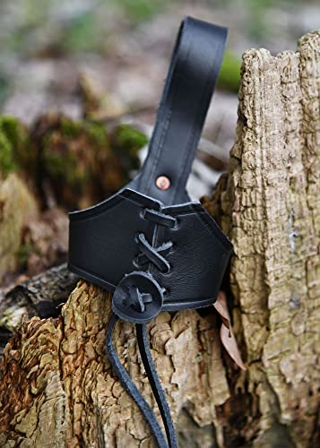 Supporto per trinco Vichingo, da Cintura, per corni da 0,4 l, in Pelle, Nero, Medievale