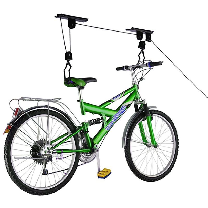 Kit per appendere la bicicletta al soffitto. Il supporto funziona tramite un sistema di carrucole, funi e ganci. La bicicletta è tenuta sospesa da 2 ganci che tengono rispettivamente il manubrio e la sella. I ganci hanno un rivestimento in plastica morbida per evitare danni alla bici. Sicurezza garantita grazie ad un meccanismo di frenatura automatica. Dispone di tutti gli elementi necessari per eseguire il montaggio. Caratteristiche del prodotto: SPAZIO: ottimizza lo spazio disponibile e tienilo in ordine appendendo la bici al soffitto. Puoi tenere la bici fino a 4 metri di altezza. Ideale per riporre le tue biciclette in stanze con soffitti alti. SICURO: Sicurezza garantita con certificazione TÜV e GS per supportare biciclette di peso fino a 20 Kg. Il sistema ha un meccanismo di freno automatico. CONFORTEVOLE: Sali e scendi dalla bici con poco sforzo grazie al sistema di carrucole, funi e ganci. Accedi facilmente e comodamente. Include un gancio a muro per avvolgere la corda quando