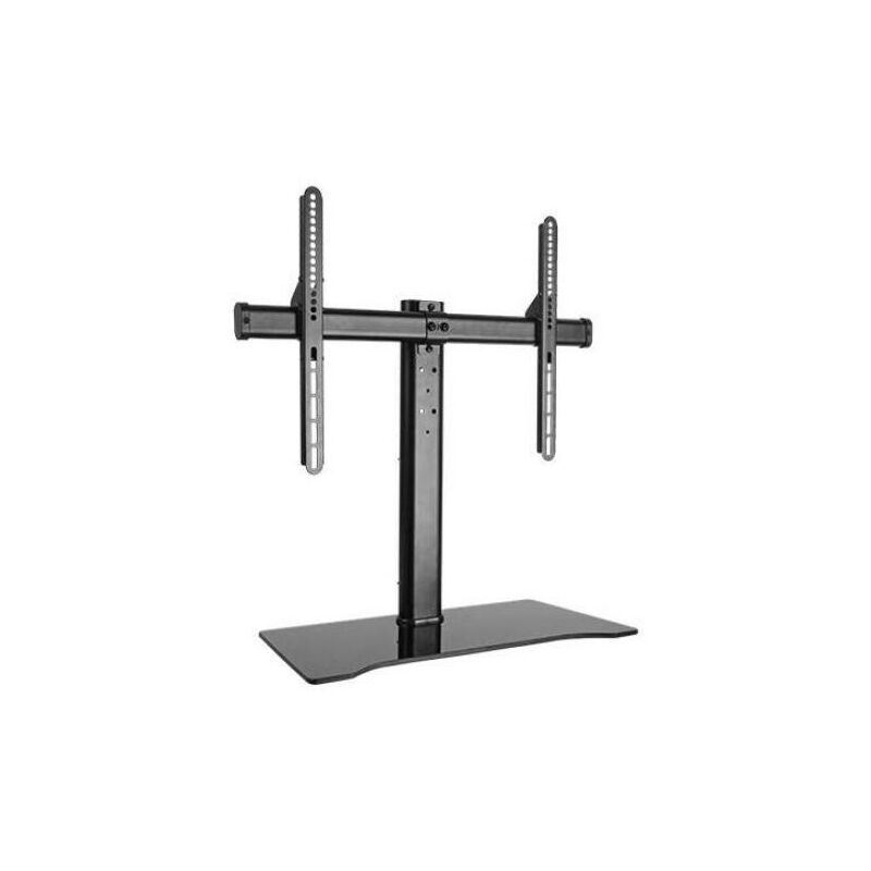 SUPPORTO UNIVERSALE DA TAVOLO PER TV 32-55 La struttura molto robusta supporta TV LED, LCD e schermi piatti fino a 55 con un peso fino a 45 kg rende stabile la visione anche con schermi molto larghi e pesanti. Altezza regolabile in 3 posizioni da 575, 645 o 715 mm. Costruzione di alta qualità, con struttura per massimizzare l'areazione. Base in vetro temperato di 600x250 mm per alloggiare i dispositivi audiovideo. Con ganci per supporto e organizzazione cavi. Tipo di base Floor plate Regolazione altezza Sì Range di regolazione altezza 575 - 715 mm Colore del prodotto Nero Materiale della scocca Vetro, Acciaio Peso massimo (capacità) 45 kg Capienza massima dimensioni dello schermo 139,7 cm (55) Tipo di montaggio Pavimento Capienza minima dimensioni dello schermo 81,3 cm (32) Numero di display supportati 1