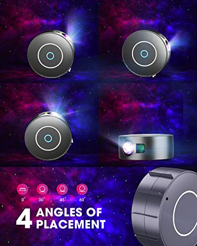 【4 Direzioni di proiezione regolabili】Ha 4 pannelli laterali sulla base, può fornire quattro diverse proiezioni angolari (30°/45°/60° e livello). È possibile giocare la proiezione sul soffitto, sul pavimento, sulla parete o in qualsiasi direzione. Inoltre, è possibile controllare il movimento e la velocità del cielo stellato in modo intelligente per stimolare la curiosità, l'immaginazione e la creatività dei bambini.