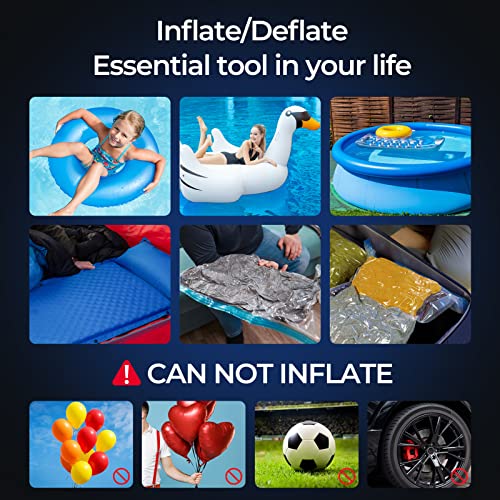 【4 Diverse Bocchette】La pompa ad aria elettrica è dotata di quattro diverse tipologie di bocchette, consentendoti di soddisfare le tue varie esigenze di inflazione. È perfetta per gonfiare materassi ad aria, piscine, anelli da nuoto, piscine per bambini, palle da yoga e altri oggetti gonfiabili. Inoltre, può essere utilizzata per rimuovere l'aria in eccesso dalle buste di conservazione sottovuoto, fornendo un ulteriore livello di comodità.