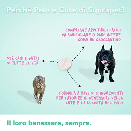 Suprapet Pelo e Cute per Cane e Gatto 30 compresse a base di Biotina, Zinco, Vitamine B, Metionina e Cistina per il Benessere e la lucentezza del Pelo | Mangime Complementare