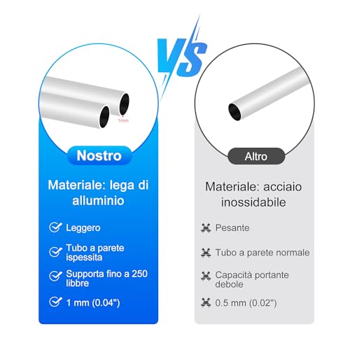 Leggero e durevole: realizzato in alluminio anodizzato resistente alla corrosione, il bastone è dotato di tubi dalle pareti ispessite, leggeri ma sufficientemente robusti per sostenere un peso fino a 113 kg