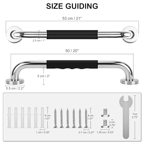 Supregear Maniglioni Bagno, 50 cm SUS 304 Acciaio Inox Antiscivolo Bagno Doccia Maniglia per Anziani Bambini Incinta Vasca da Bagno Camera da Letto, Vite Nascosta Montato a Parete