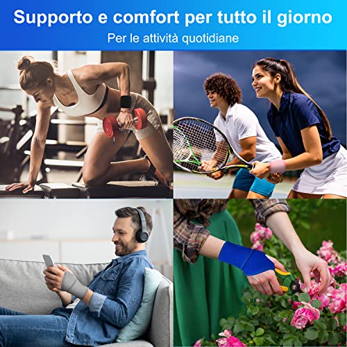 Efficace ed Eccellente: ampiamente utilizzato per prevenire infortuni sportivi ripetitivi e combatte il dolore al polso causato da tunnel carpale, post-operatorio, tendiniti e altro;