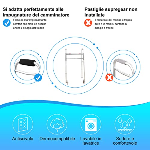 Supregear Walker Impugnature Imbottite, 2 Confezioni Morbidi Comodi Cuscini Manopole Imbottite per Walker Stampella, Sedia a Rotelle, Accessorio per La Mobilità Traspirante Antiscivolo, Nero