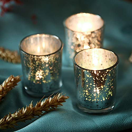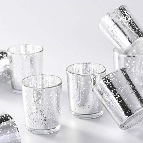Supreme Lights 12 portacandele in Vetro votivo 2,2x2,6 Pollici, portacandele Tealight con candelabri Color Mercurio candeliere Decorazioni Regalo per Compleanno, Festa, Matrimonio,Famiglia (Argento)