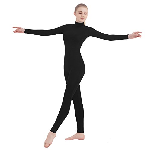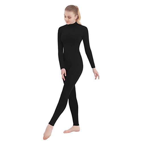 SUPRNOWA Unisex Finto Dolcevita Lycra Spandex Manica Lunga Unitard (L, Nero Senza Piede)