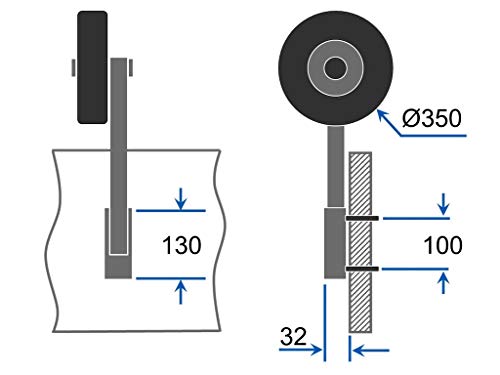 SUPROD Coppia Ruote di Poppa, per Derive, alaggio, ET350-LU, Acciaio Inossidabile, Nero/Blu