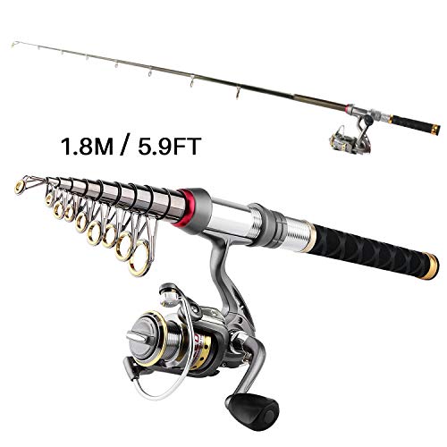 Vari accessori: la lenza intrecciata super potenza è durevole, varie esche da pesca e girelle, ganci e piombini sono confezionati in una scatola di plastica. La borsa da pesca impermeabile è lunga 50 cm, abbastanza grande per tutti i vostri kit da pesca. Si tratta di una canna da pesca da viaggio set per la pesca da barca, scogliere e rocce in viaggio e vacanze in acqua dolce e salata.