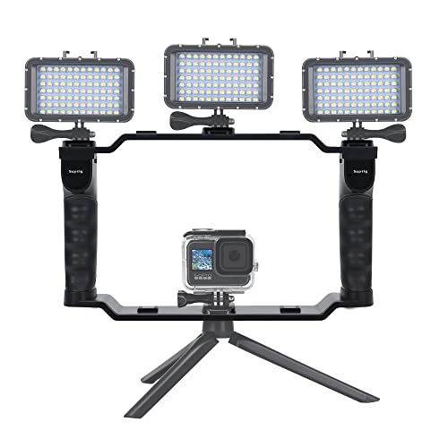Supporti multipli: Suptig Dive Rig ha 4 supporti per scarpe fredde e 4 supporti a sgancio rapido per collegare luci Suptig, Gopro, microfoni, telefono, luci video e treppiede, ecc. Ti aiuta a registrare video e immagini più sorprendenti.