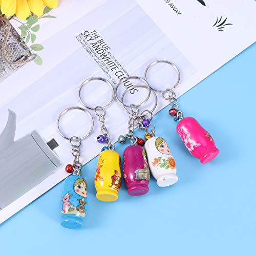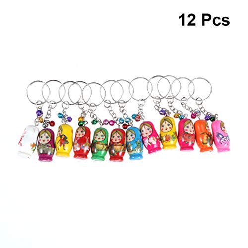 SUPVOX 12pcs Portachiavi Bambola di nidificazione Creativa Portachiavi Bambole Russe in Legno con Campana 3 4 x 1 7 x 1 7 cm Bambole Russe in Legno (Modello Casuale)