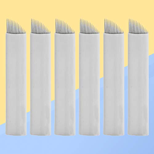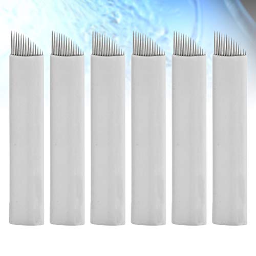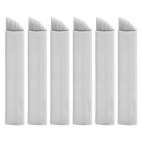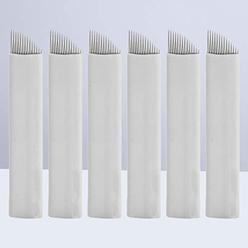 SUPVOX 50pcs aghi Microblading 14 pin trucco permanente sopracciglia tatuaggio aghi lame (bianco)