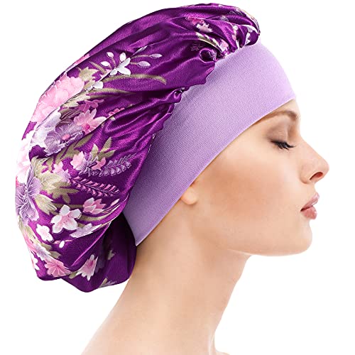 SUPVOX berretto da notte in raso di seta a fascia larga cofano notte copricapo fiore turbanti per capelli per donna bellezza capelli protezione per capelli (viola)