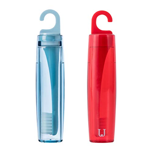 SUPVOX 2 Pezzi Spazzolino da Viaggio Portatile Spazzolino da Denti con Custodia Pieghevole Spazzolino da Tasca per Uomo Donna Forniture per Bambini (Stile Rosso Blu)